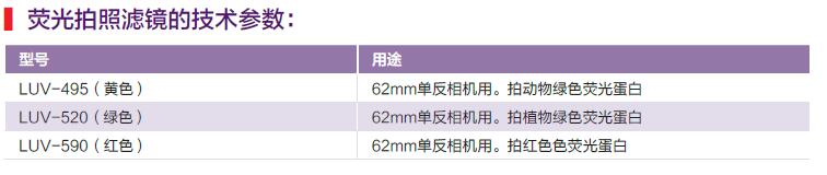 GFP熒光蛋白激發(fā)光源取照需要拍照濾鏡,熒光拍照濾鏡直徑為62mm,能夠適配62mm鏡頭的單反相機(jī)。