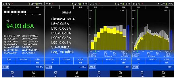 (1)傳聲器:AWA14425型預極化測試電容傳聲器,外徑Φ12.7mm(1/2〞)。標稱靈敏度:約-29dB。頻率范圍:10Hz~20kHz。 (2) 測量范圍:28dB~133dB(A),33dB~133dB(C),38dB~133dB(Z)(以2×10-5 Pa為參考,下同)。 (3) 頻率范圍:10Hz~20kHz (4) 本底噪聲:12dB(A),17dB(C),22dB(Z)(帶前置級并通過20pF電容短路)。 (5) 頻率計權:A、C、Z計權 (6) 時間計權:F(快),S(慢),I(脈沖) (7) 參考方向:為電容傳聲器的軸向 (8) 功能:儀器配合PC或手機軟件可實現(xiàn)總值分析、統(tǒng)計、頻譜分析等功能。注:PC、手機軟件另外提供 (9) 顯示:128×64點陣OLED (10) 硬件接口:USB (11) 數(shù)據(jù)輸出:WIFI (12) WIFI傳輸距離:10米(距離視周圍信號干擾情況可能有所減少) (13) WIFI模式:AP模式、STA模式 (14) 校準:使用1級或1級以上聲級校準器 (15) 電源: 鋰電:充滿電后,可連續(xù)工作6小時以上 外接電源:5V 1A USB接口電源 (16) 外形尺寸:l×b×h(mm):210×68×27(mm)。 (17) 質(zhì)量:240g。 (18) 使用條件:氣 溫:-20℃~+50℃ 相對濕度:25%~90% 氣 壓:65kPa~108kPa AWA5661-W數(shù)字聲級計/噪音計軟件視圖
