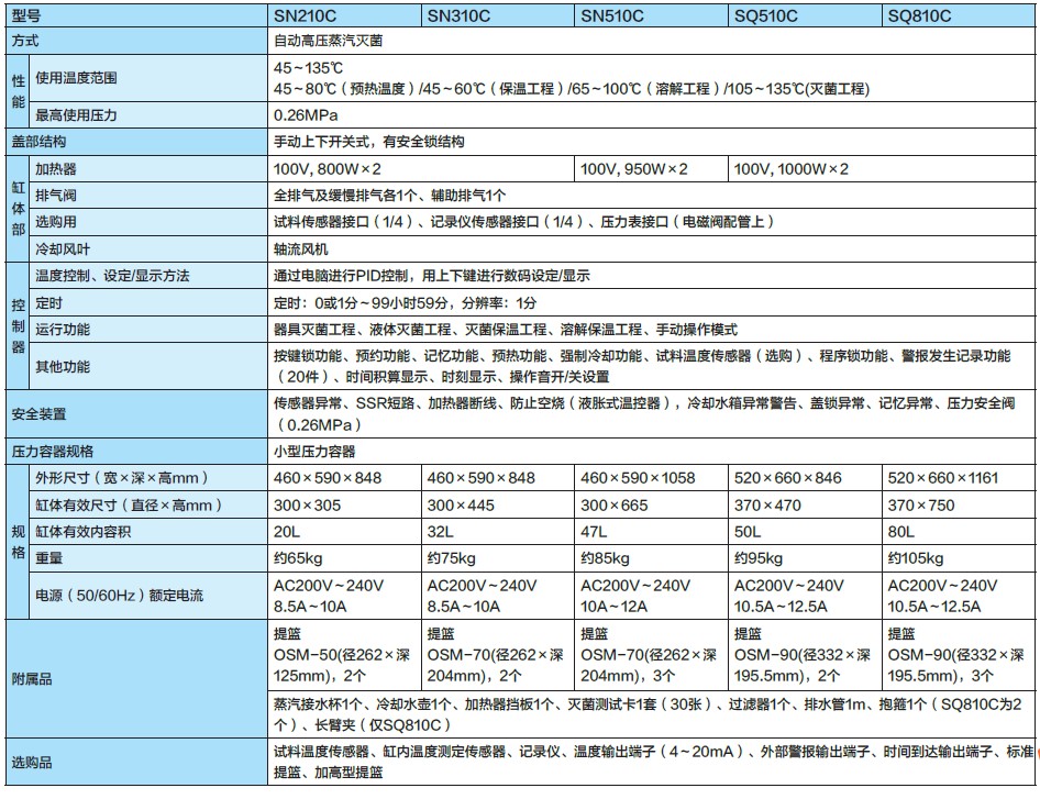 SN210C日本yamato立式壓力蒸汽滅菌器的技術參數: