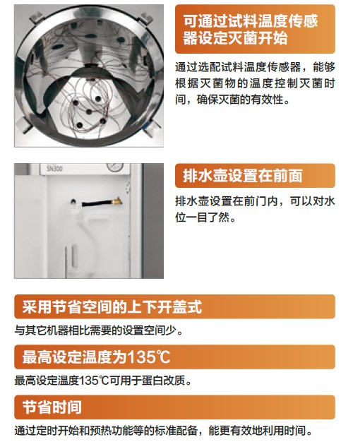 通常的滅菌,以及培養基、液體的滅菌和培養基的溶解都能通過簡單的設定進行操作。