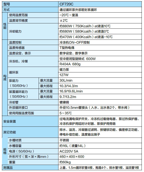 CF720C冷卻水循環(huán)裝置的技術(shù)參數(shù):