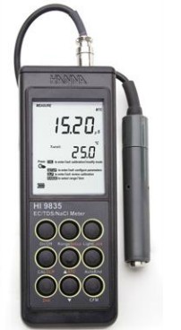 HI9835N 防水型便攜式EC/TDS/NaCl/℃測定儀為實驗室防水型便攜式電導率儀/總固體溶解度/鹽度/溫度測定儀,采用微電腦處理器,EC/TDS 自動調節量程功能可自動的設定儀器范圍,使其達到最高精度范圍。