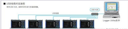 USB線纜的連接圖:使用USB HUB,能夠?qū)Χ嗵庍M行多通道測量