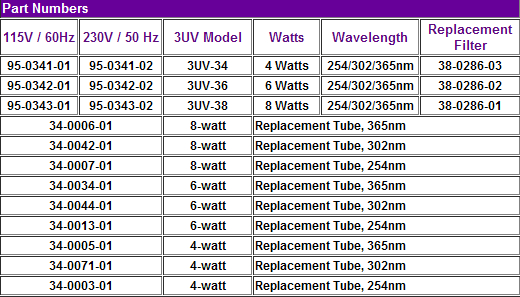 3UV-38美國UVP三波段紫外線燈的參數(shù)及應(yīng)用:
