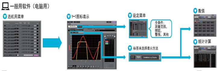 通用的應用軟件帶顯示YT圖,波形及數值的能力,為新行業用戶定制的軟件提供該行業使用的各類指標。